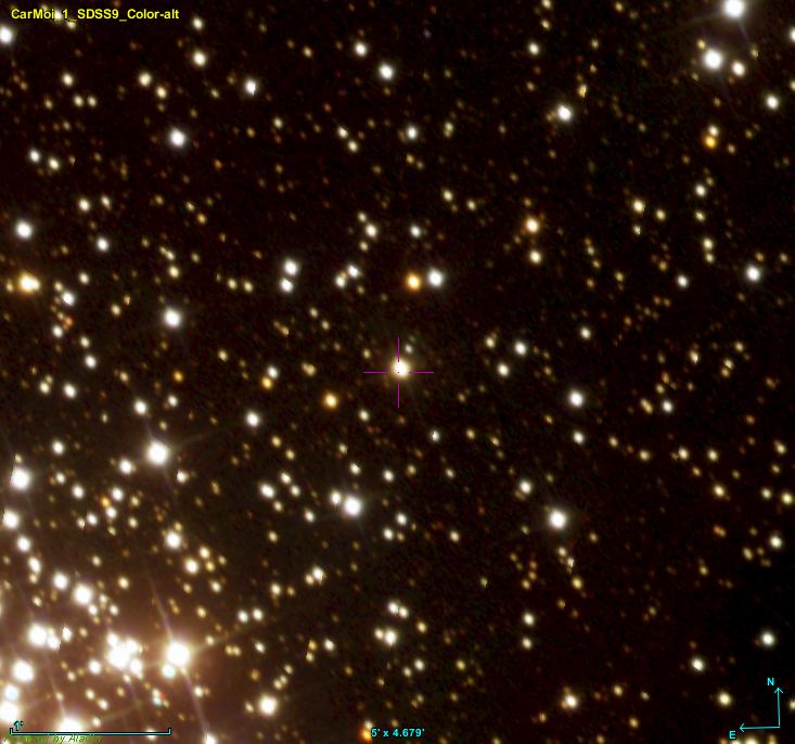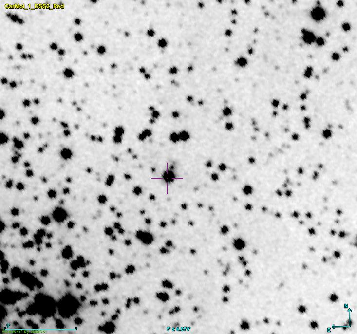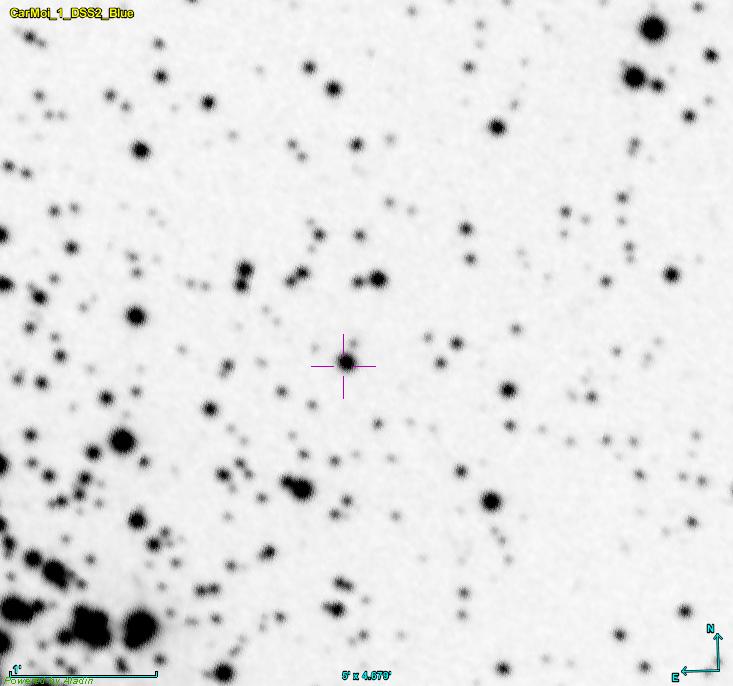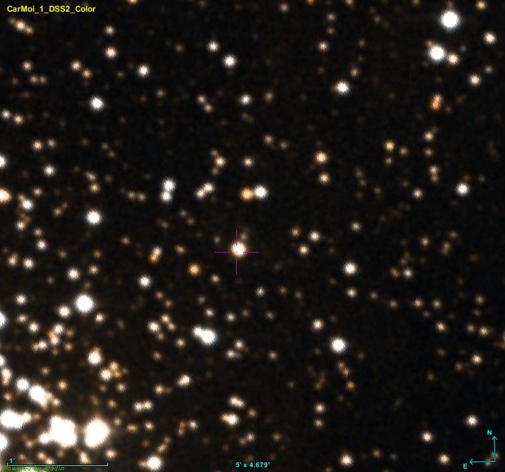 | | CarMoi 1 | Carter - Moiel | | Statut: | | PN-G: 110.8+00.1 | Coordonnées: 23:10:46.10 +60:35:48.40 | | Origine: Oliver Carter, Charles Moiel | Dimensions: 0.6 arc min | | Image(s) réalisée(s): Halpha, [OIII] (O. Carter, C. Moiel) [1] | | Publication: non publiée |