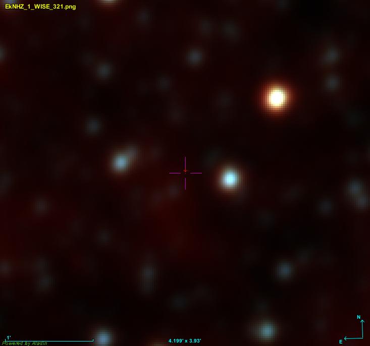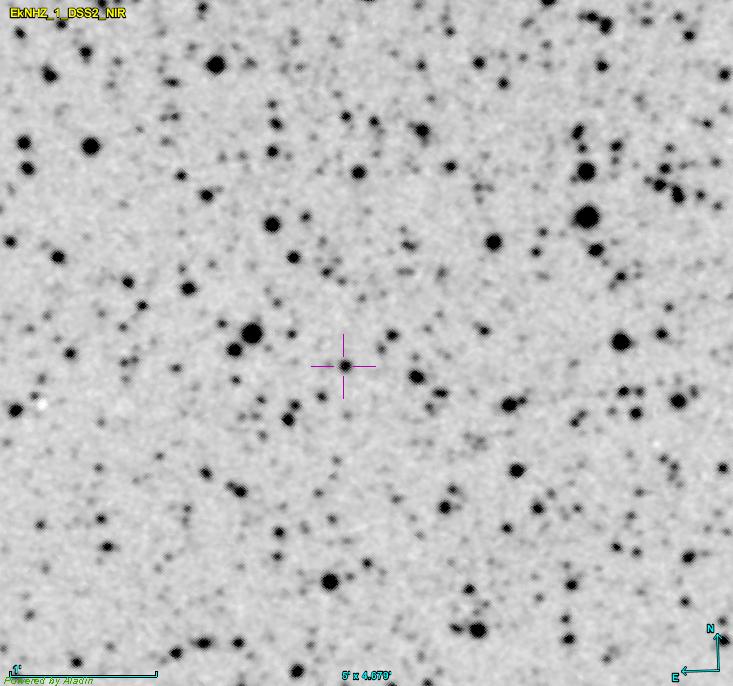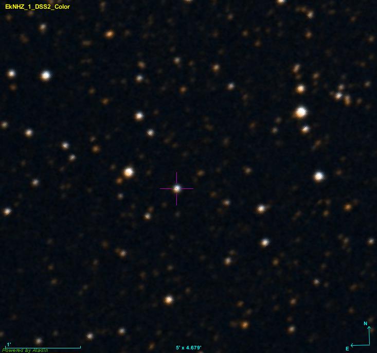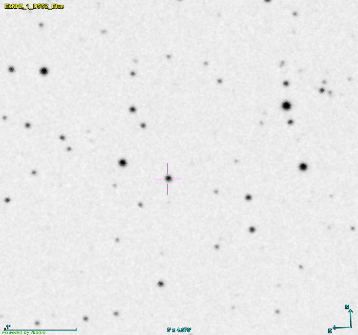 | | EkNHZ 1 | Eklund - Schaeffer - Paulin | | Statut: Nouvelle candidate | | PN-G: 040.8+01.8 | Coordonnées: 18:59:24.70 +07:51:02.40 | | Origine: Sven Eklund, Tim Schaeffer - NHZ | Dimensions: 10 x 5 arc min | | Image(s) réalisée(s): Halpha, [OIII] (S.Elund, NHZ) [1] | | Publication: non publiée |