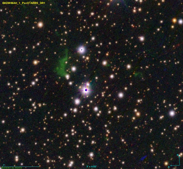 | | BKDWMAH 1 | Biswas - Kuster - De Winter - Moon - Ambrose - Hill | | Statut: | | PN-G: 127.9+01.8 | Coordonnées: 01:37:42.54 +64:14:06.40 | | Origine: Joydeep Biswas, Max Kuster, Julien De Winter, Jamie Moon, Nick Ambrose, Jonathan Hill | Dimensions: 0.8 arc min | | Image(s) réalisée(s): Halpha, [OIII] (J. Biswas, M. Kuster, J. De Winter, J. Moon, N. Ambrose, J. Hill) [1] | | Publication: non publiée |